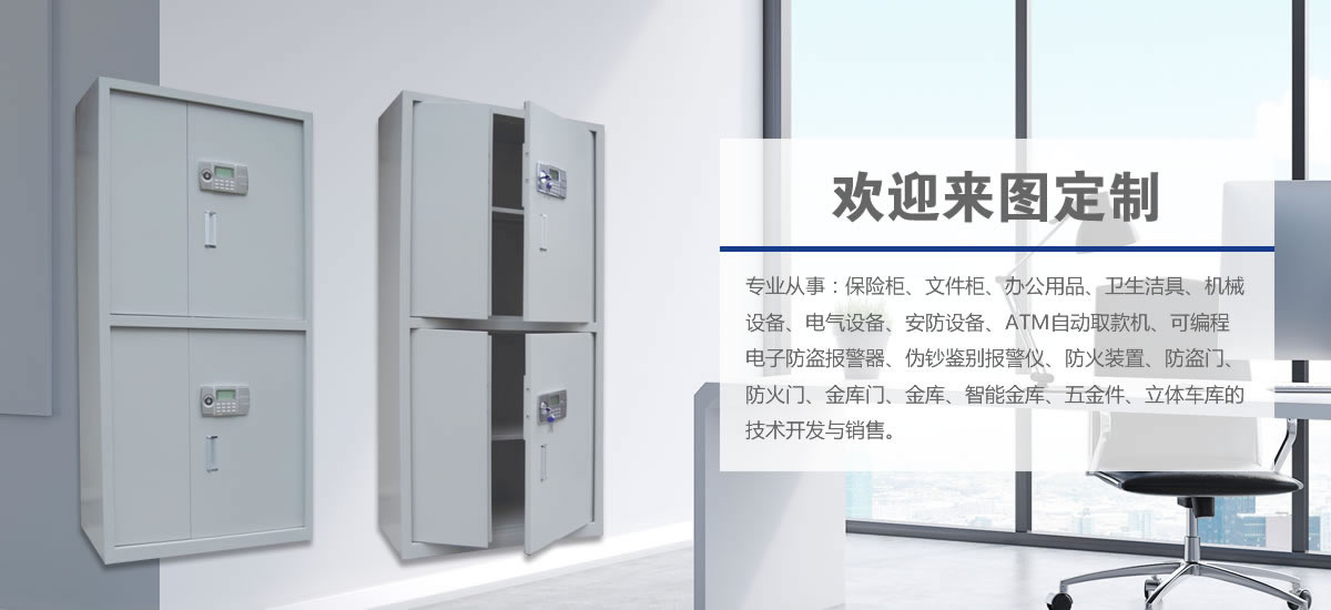 ? 專業(yè)從事:保險柜、文件柜、辦公用品、衛(wèi)生潔具、機(jī)械設(shè)備、電氣設(shè)備、安防設(shè)備、ATM自動取款機(jī)、可編程電子防盜報警器、偽鈔鑒別報警儀、防火裝置、防盜門、防火門、金庫門、金庫、智能金庫、五金件、立體車庫的技術(shù)開發(fā)與銷售